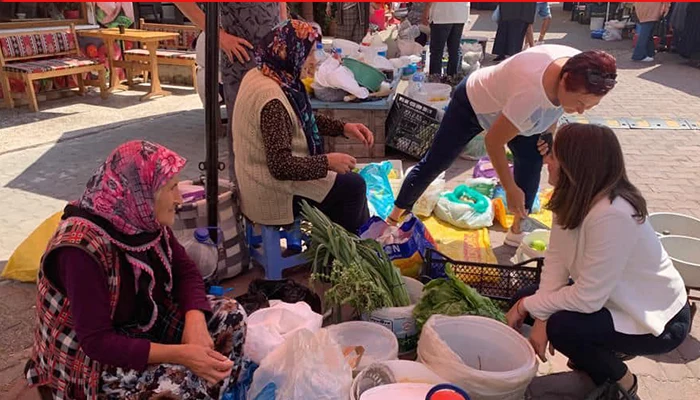 Aysu Bankoğlu, Kurucaşile gezisi sırasında esnaf ve pazarcıların sorunlarını dinledi.