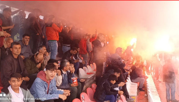 2- İki takım taraftarları, davullar ve meşalelerle tribündeki yerlerini aldı. Maç da tribünlerin coşkulu tezahüratları altında başladı. Minibüslerle gelen Kumluca taraftarı, tribünün de hakimiydi. Abdipaşa taraftarı da devreye girince renkli görüntüler oluştu.