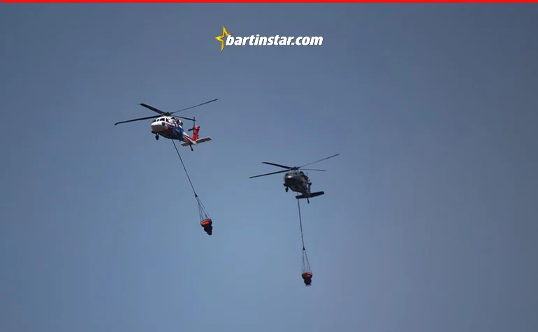 Bölgede kuvvetli rüzgar etkili olurken, Bartın Milletvekili Yusuf Ziya Aldatmaz, Bartın Valisi Nurtaç Arslan da çalışmaları yerinde takip etti. Bartın Valiliği, arazi şartları nedeniyle Orman Bölge Müdürlüğü’nden hava desteği istedi. Bunun üzerine 2 yangın söndürme helikopteri, bölgeye ulaşarak yangına havadan müdahaleye başladı.