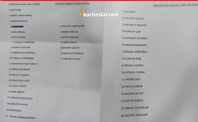 Kongre öncesi BartınStar’ın duyurduğu gibi iki liste ortaya çıktı. İki kanadın listesi de kongreye saatler kala haber merkezimize ulaştı.