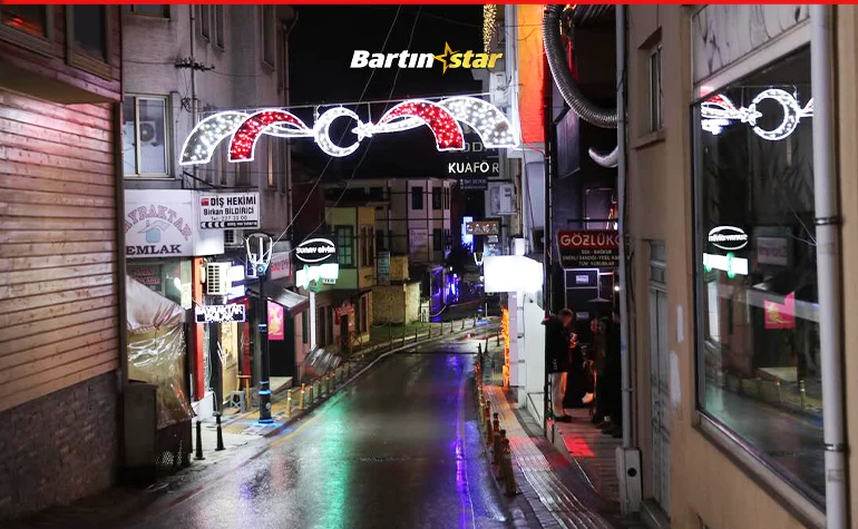 Bartın Belediyesi, yeni yıl nedeniyle cadde ve sokakları ışıklandırdı. Esnaf da süsleme yarışına katılınca gerçekten güzel görüntüler oluştu.