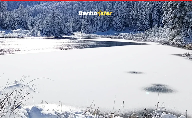Bartın-Karabük sınırlarındaki bin 750 rakımdaki Sarıçiçek Göleti, dondurucu soğuklarla birlikte buz tuttu.