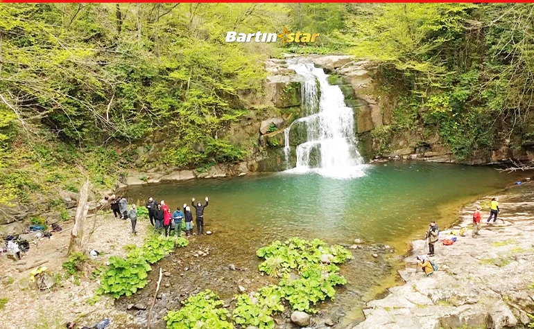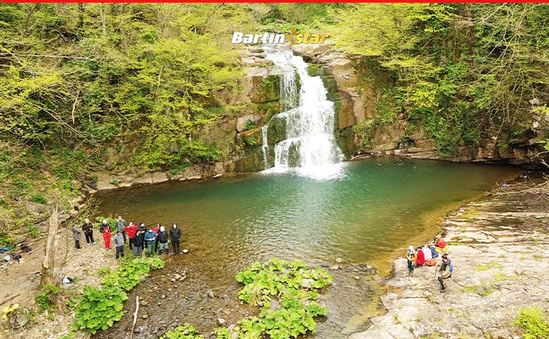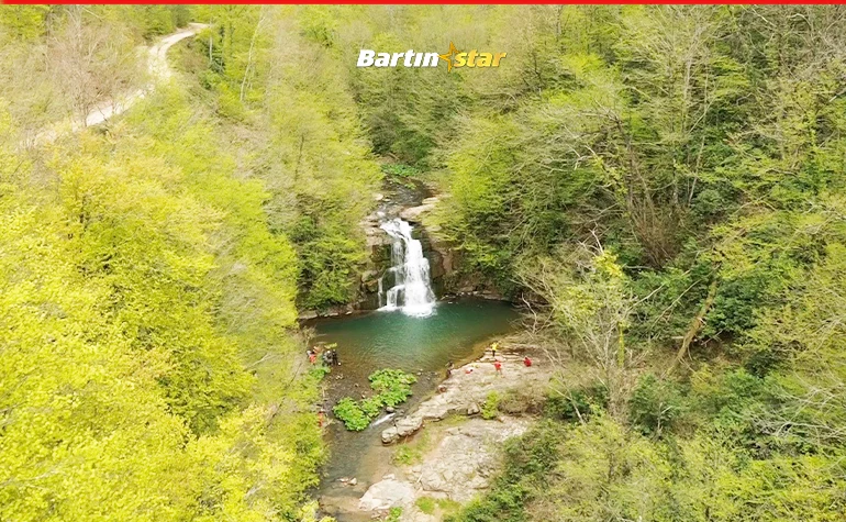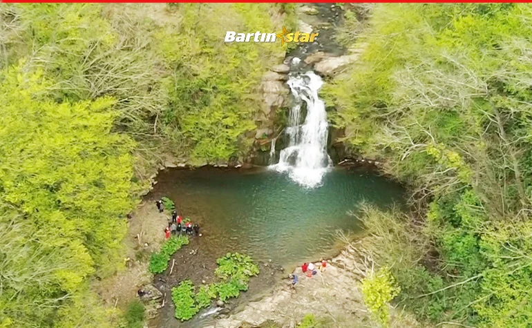 Bartın Dağcılık ve Doğa Sporları Kulübü (BARDOKS74) üyeleri, ilkbaharda farklı renklere bürünen şelaleye giderek manzaranın keyfini yaşadı. Ayrıca şelale ve etrafındaki eşsiz orman örtüsünün ilkbahardaki eşsiz manzarası dron ile görüntülendi. (DHA)
