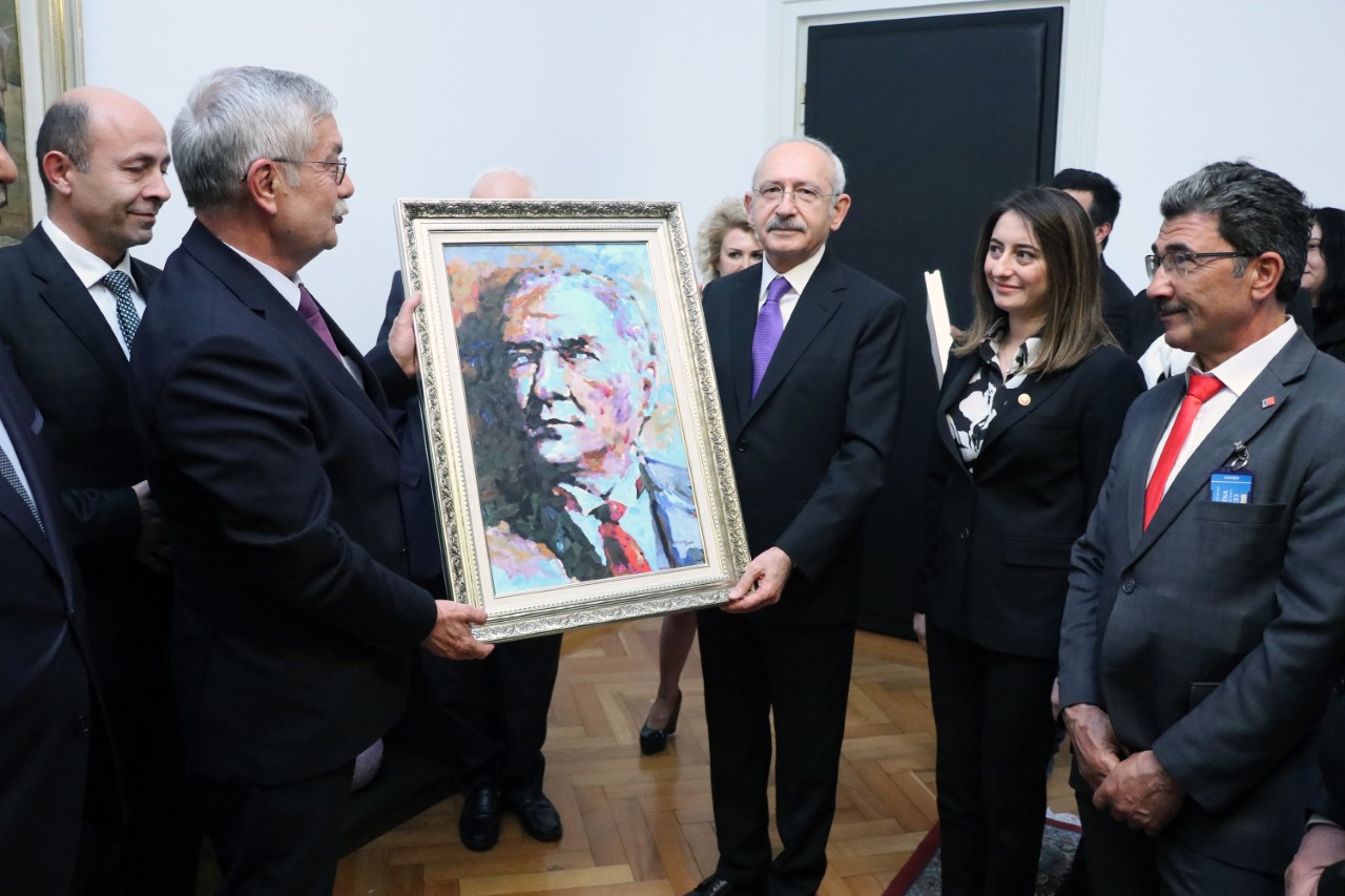 CHP İl Başkanı Selim Karakaş, Bartınlı ressam Ersoy Kantarcıoğlu tarafından özel olarak hazırlanan Atatürk portresini Kılıçdaroğlu’na hediye etti. Amasra Belediye Başkanı Recai Çakır da ziyarete eli boş gelmemişti.