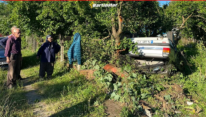 Kaza, Bartın’ın Ulus ilçesine bağlı Kumluca beldesinde bu akşam saatlerinde yaşandı. Köyden gelerek Kumluca çıkışındaki petrol istasyonundan gaz alan köy imama M.T’nin kullandığı otomobil, tam Kumluca girişinde, Tabelacı Hasan’ın evinin olduğu bölgede kontrolden çıktı. Yoldan çıkarak bostana giren ve ters dönen otomobilde neyse ki tek kişi vardı. Kazayı görenler hemen 112 ve Jandarma ekiplerine haber verdi.