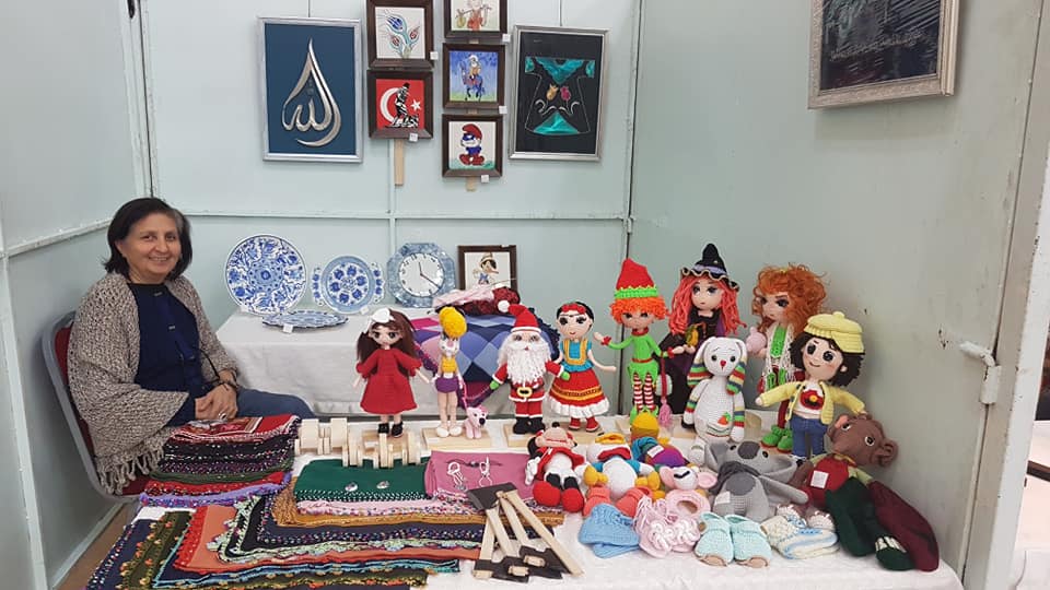 25 liraya sabun ve çiçek saksıları, 15 liraya örgü lif ve keseler, 5 liradan 100 liraya kadar takılar, 20 liradan 500 liraya kadar tel kırma ve tel sarma işlemeli hediyelikler…